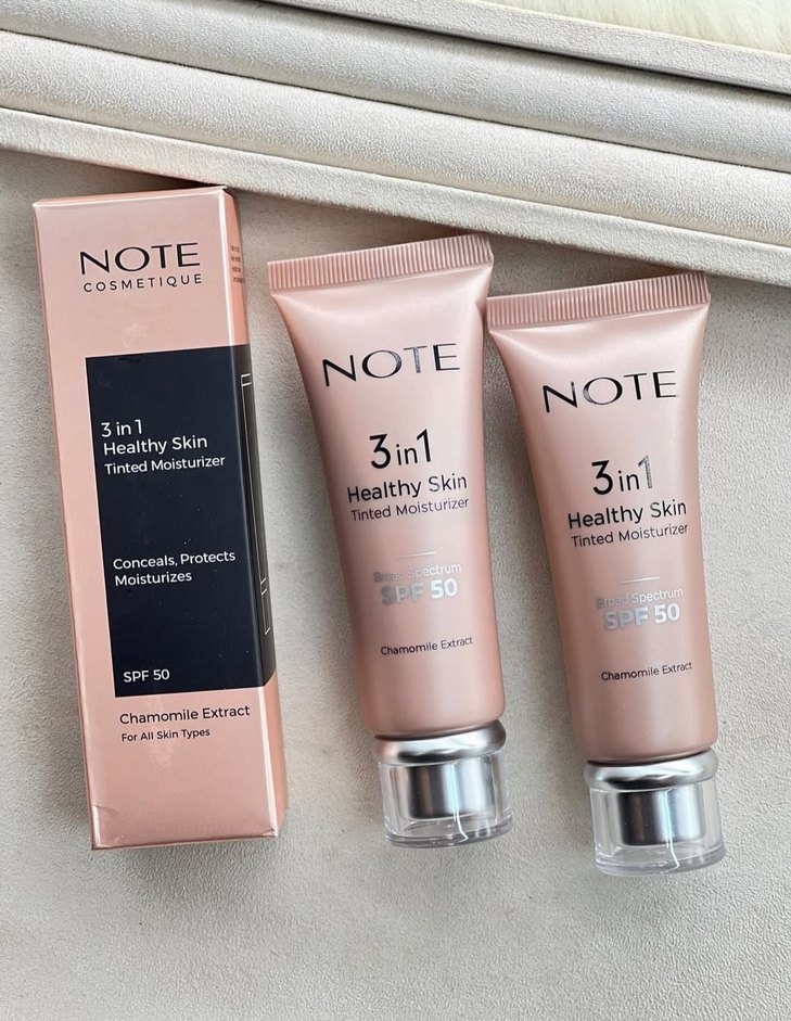 Note 3'ü 1 arada Sağlıklı Cilt BB Krem, SPF 50 koruması ve papatya özü ile cildi kapatır, korur ve nemlendirir.