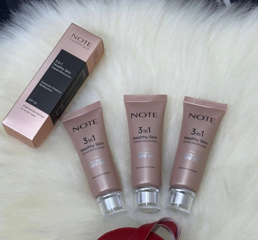 Stok durumunu sormadan sipariş vermeyin Note 3in1 BB krem, SPF50 korumalı, sağlıklı cilt için renkli nemlendirici olarak bej tonunda sunuluyor.