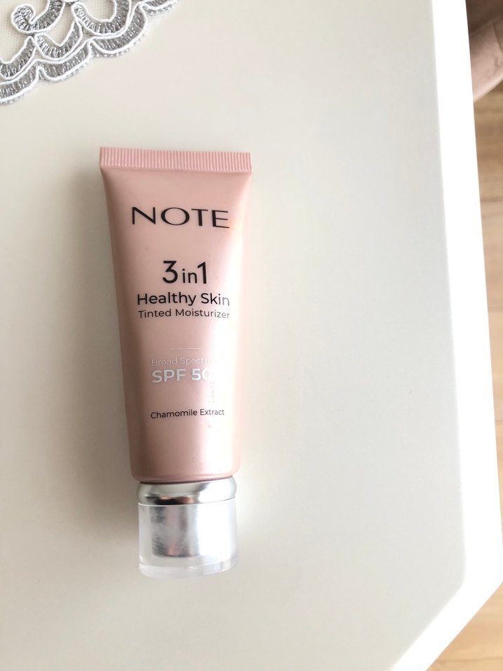 Note 3in1 Sağlıklı Cilt tonlu nemlendirici, SPF 50 ve papatya özü ile açık bej renk sağlar.