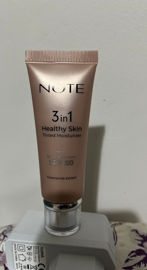 Note 3in1 Sağlıklı Cilt tonlu nemlendirici, SPF50 koruma ve papatya özü içerir. Parlak bej renkte. Bir iki kez ancak kullandım, ancak benim ten rengime koyu geldi, uymadı, o yüzden satıyorum.