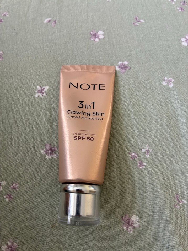 NOTE 3in1 Glowing Skin renkli nemlendirici, SPF 50 koruması ve pastel bej tonuyla parlak bir cilt sağlar.