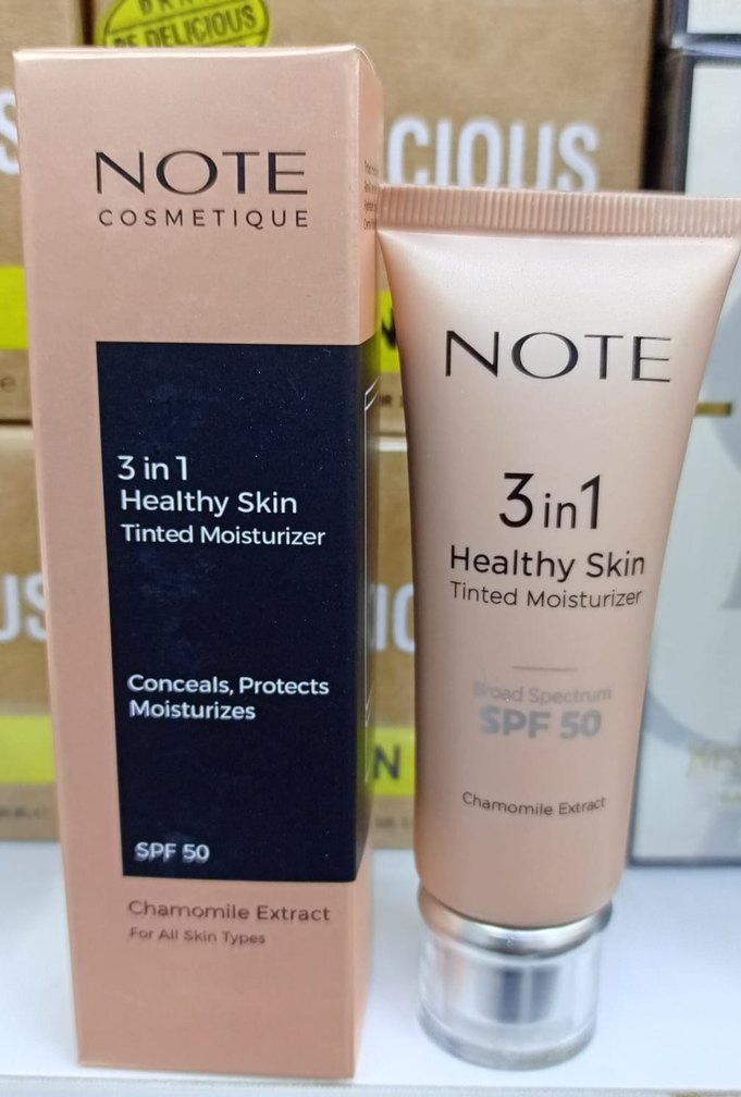 Note 3ü1 Arada Sağlıklı Cilt BB Krem, nemlendirir, kapatır ve SPF 50 koruma sağlar. Papatya özü içerir, tüm cilt tiplerine uygundur. ✨ açık ton