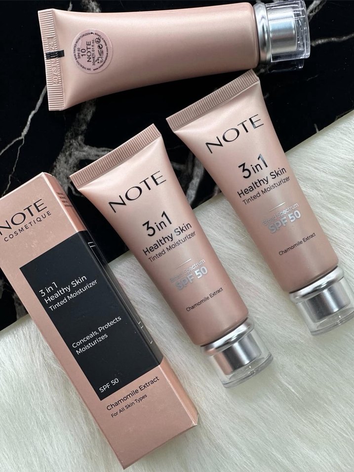 Note 3ü1 Arada Sağlıklı Cilt BB Krem, SPF 50 ve papatya özü ile kapatıcı, koruyucu ve nemlendirici özellikler sunar.