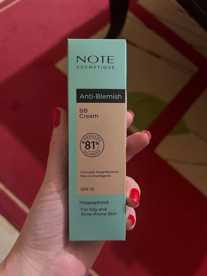 Note Anti-Blemish BB Krem SPF 15, yağlı ve akneye meyilli ciltler için uygundur. Kusurları gizler, yağlanmayı %81 azaltır. Hiç kullanmadım, hiç açılmadı. Koruma bantları üzerindedir.