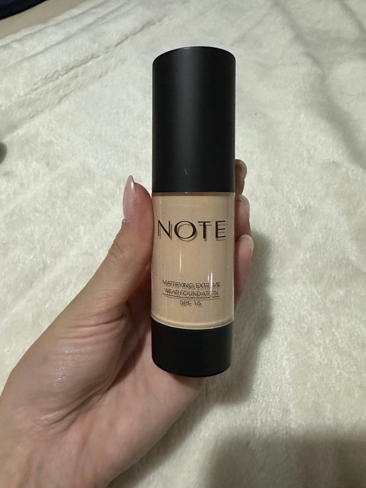 Note markasına ait açık bej tonunda, SPF 16 korumalı fondöten. Matlaştırıcı etkili