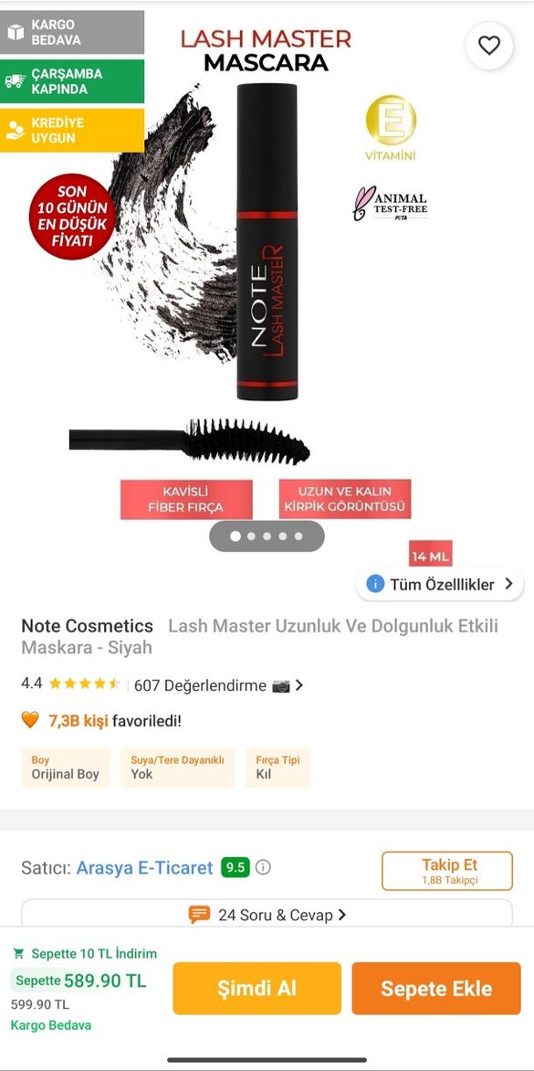 Note Cosmetics Lash Maskara | Uzunluk &Dolgunluk Etiketli & Yeni