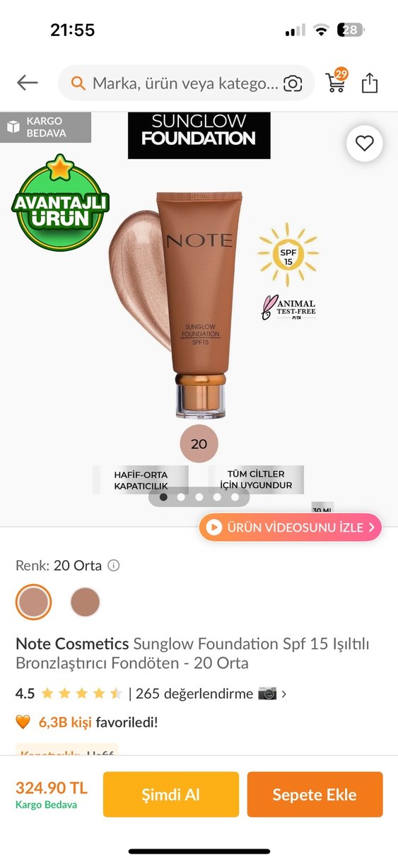 Note Cosmetics Sunglow Fondöten SPF 15 - 20 Orta