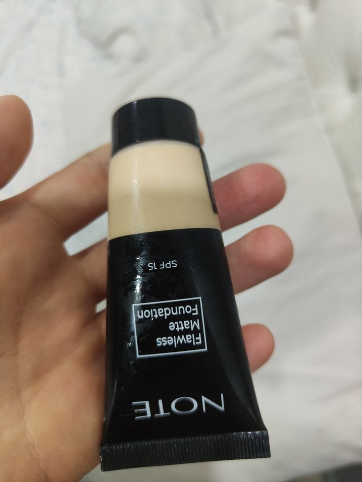Note Flawless Matte Fondöten, bej tonunda, parlak bir görünüm ve SPF 15 koruması sağlar. Pürüzsüz bir cilt için idealdir.