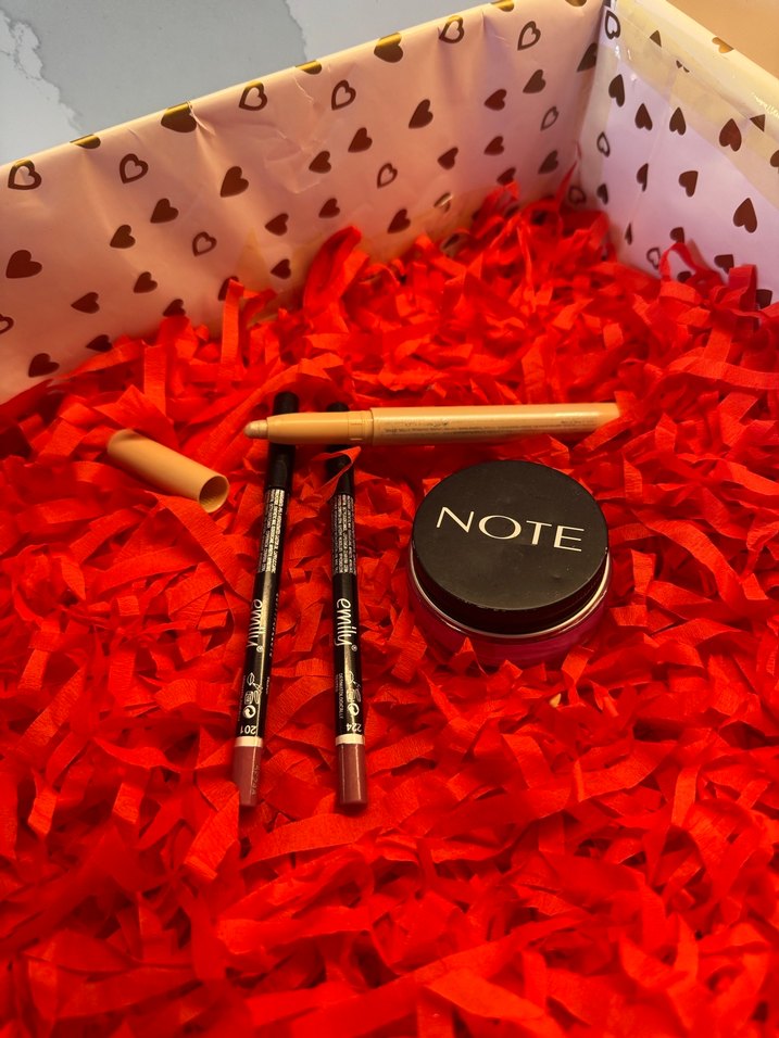 Note kaş sabitleyici iki tane dudak kalemi ve bir adet göz farı