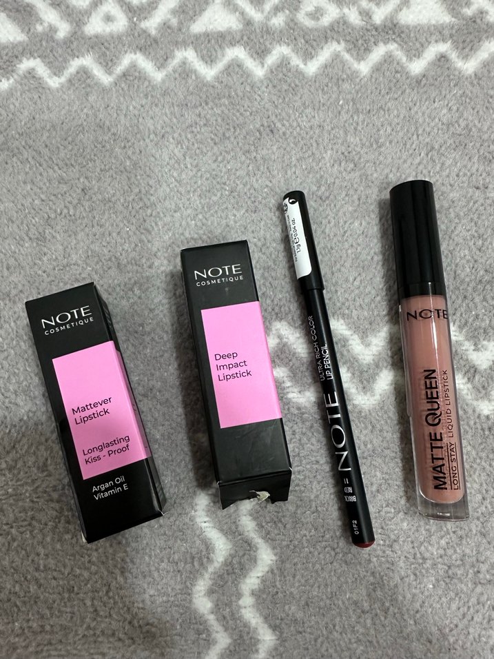 Note makyaj malzemeleri temiz sadece elde deneme amaçlı kullanıldı. -2 adet ruj -1 adet dudak kalemi -1 adet lipstick Toplamda 4 adet makyaj malzemesi tek fiyat yeni temiz,orijinal ürün. Hediye geldi ihtiyacım olmadığı için satıyorum bu fiyata başka yerde bulamazsınız.