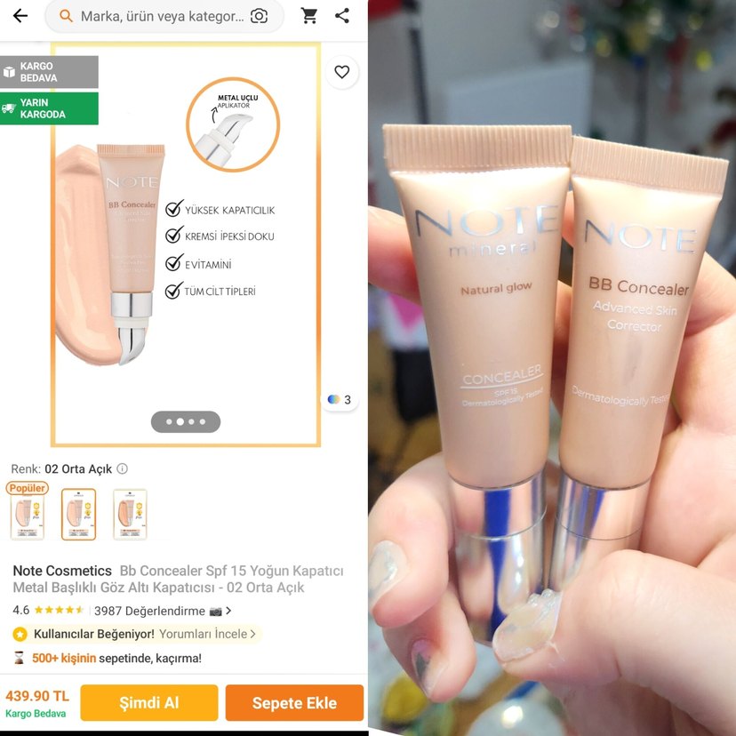 Note Mineral BB Kapatıcı 2 renk bulunuyor