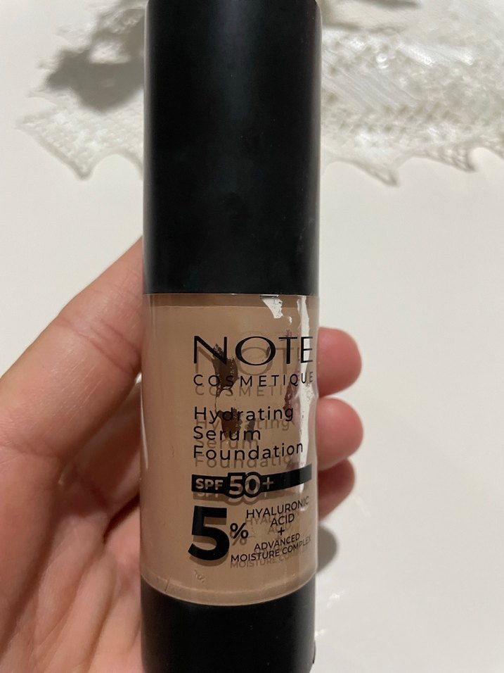 Note nemlendirici serum fondöten, SPF 50 koruma ve %5 hyaluronik asit ile nem dengesi sağlar.
