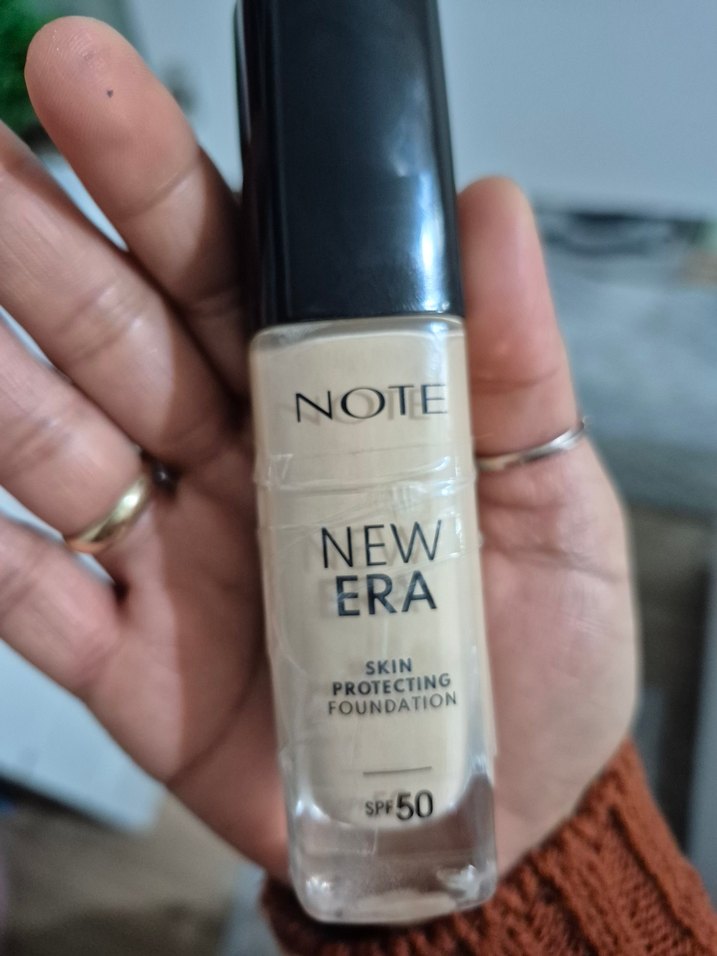 Note New Era fondöten, SPF 50 ile cildi koruyan parlak bej tonunda bir üründür. Ciltte koruma sağlar. ☀️ orijinal üründür tonu bana çok açık geldi 1 kez kullandım