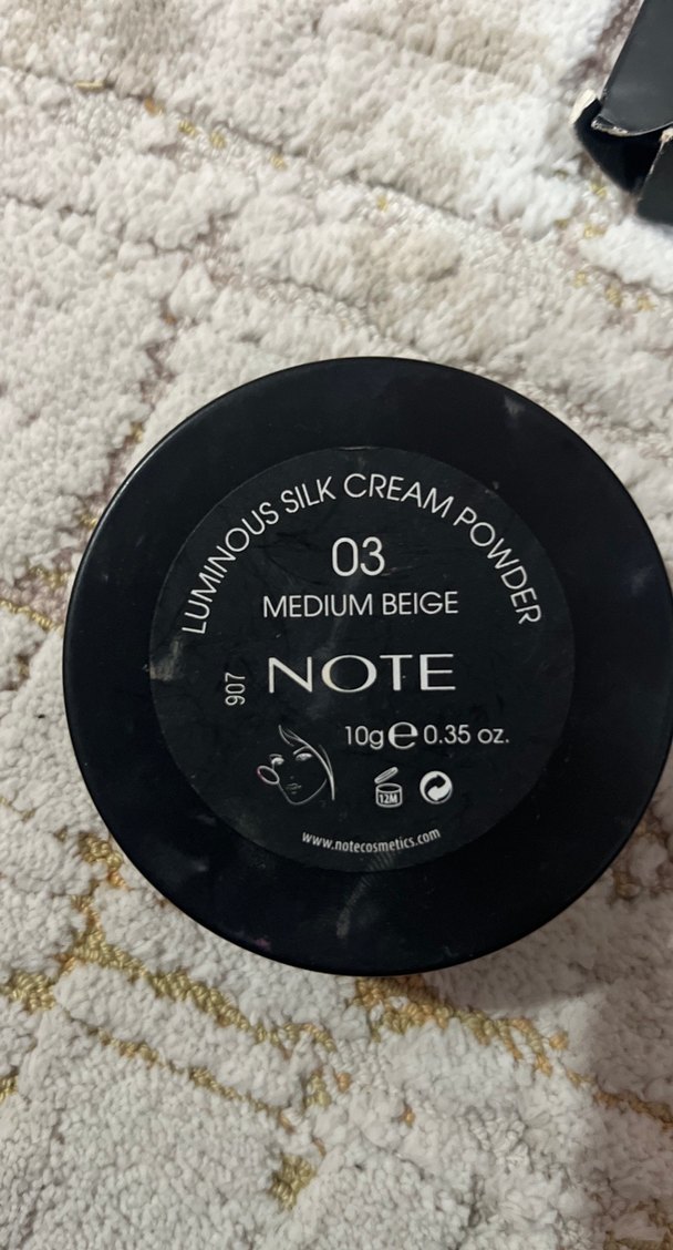 Ürü. Kullanılmamış yanlışlıkla çocuklar parmaklarını sürmüş.Note markasına ait orta bej renkli 10 gramlık ışıltılı ipek krem pudra. Hafif dokusuyla pürüzsüz bir görünüm sağlar.