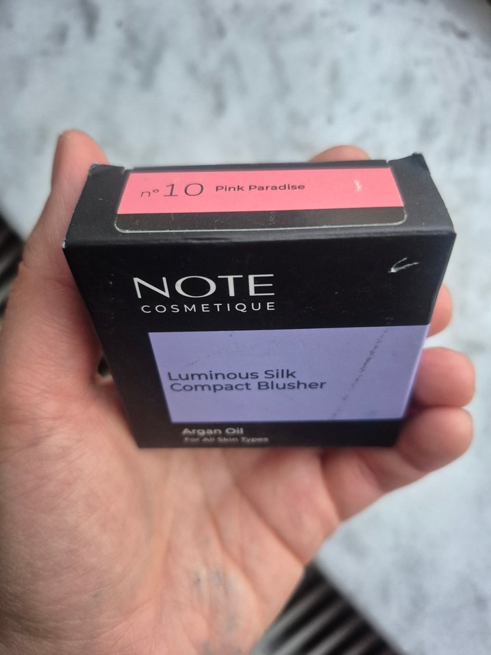 Note marka toz allık. 10 numara "Pink Paradise" rengi (beyaz tenliler için uygun bir bebek pembesi). İçinde aynası ve pudra fırçası var. Hiç açılmadı. Bu rengi sevdiğim için yedek olarak almıştım.