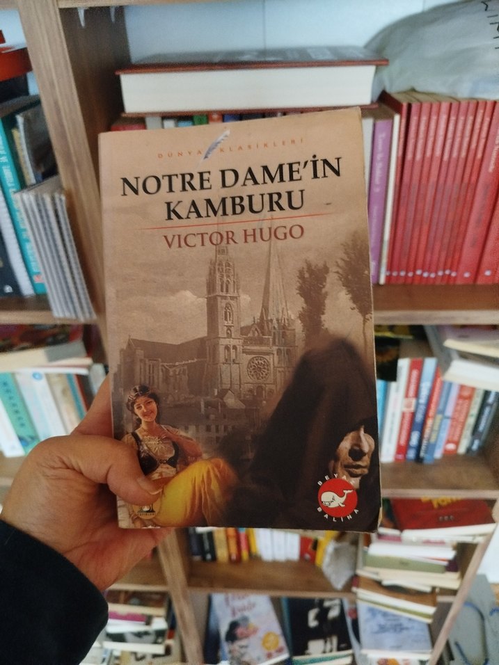 Victor Hugo'nun klasik romanı "Notre Dame'in Kamburu" Notre Dame katedrali ve karakterlerinin hikayesini anlatıyor. #notredame'inkamburu #victorhugo yıllar önce aldığım için sararmış durumda, sayfalarda çizik yok ancak bazı sayfalar kıvrılmış uzun süredir dolapta durduğu için, okumaya engel olmadığını düşünüyorum.