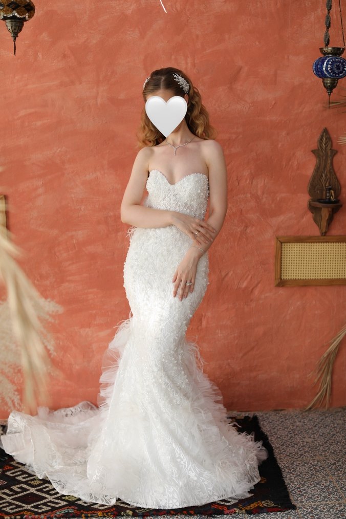 Nova sposa marka gelinlik 36 bedenden üzerime göre daraltılmıştır. Ölçülerim 82-65-95.Arkası ipli olduğundan 34-36-38 bedenler ile uyumludur. Nikah ve dış çekim olmak üzere 2 defa giyilmiş olup, kuru temizlemesi yapılmıştır. Gelinliğin demonte ayrıca kuyruğu da bulunmaktadır. Takılınca daha A kesim bir gelinliğe dönüşebilmektedir. Görsellerde mevcuttur. Duvağı demonte kuyruğunu ve gelinliği beraber satış yapmaktayım.