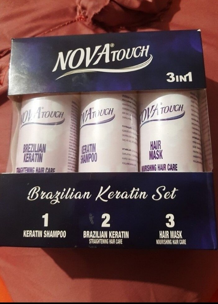 Nova Touch Brezilya Keratin Seti, keratin şampuan, Brezilya keratini ve besleyici saç maskesi içerir. Saçı düzleştirir ve besler. boyalı saclar için ideal