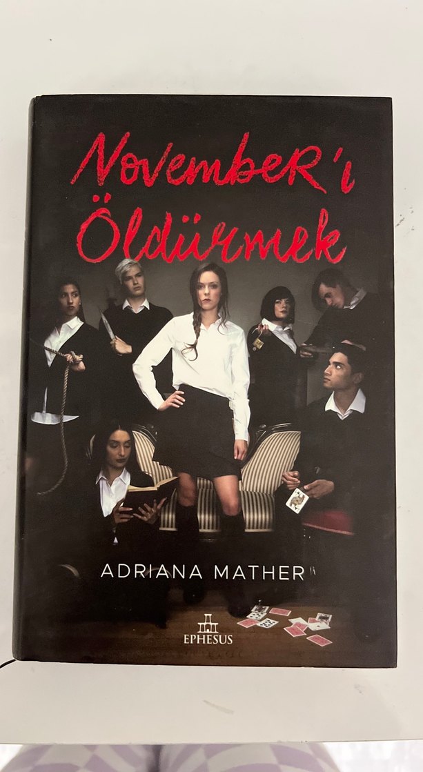 Adriana Mather'ın yazdığı, Ephesus tarafından yayımlanan "November'ı Öldürmek" adlı roman. Kapakta koyu kıyafetli gençler yer alıyor.