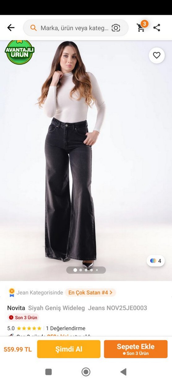 Novita siyah geniş paça, normal boy ve bol kesim jean. Günlük kullanıma uygun, rahat ve şık bir model. teklif verebilirsiniz Kalıbı Geniş
