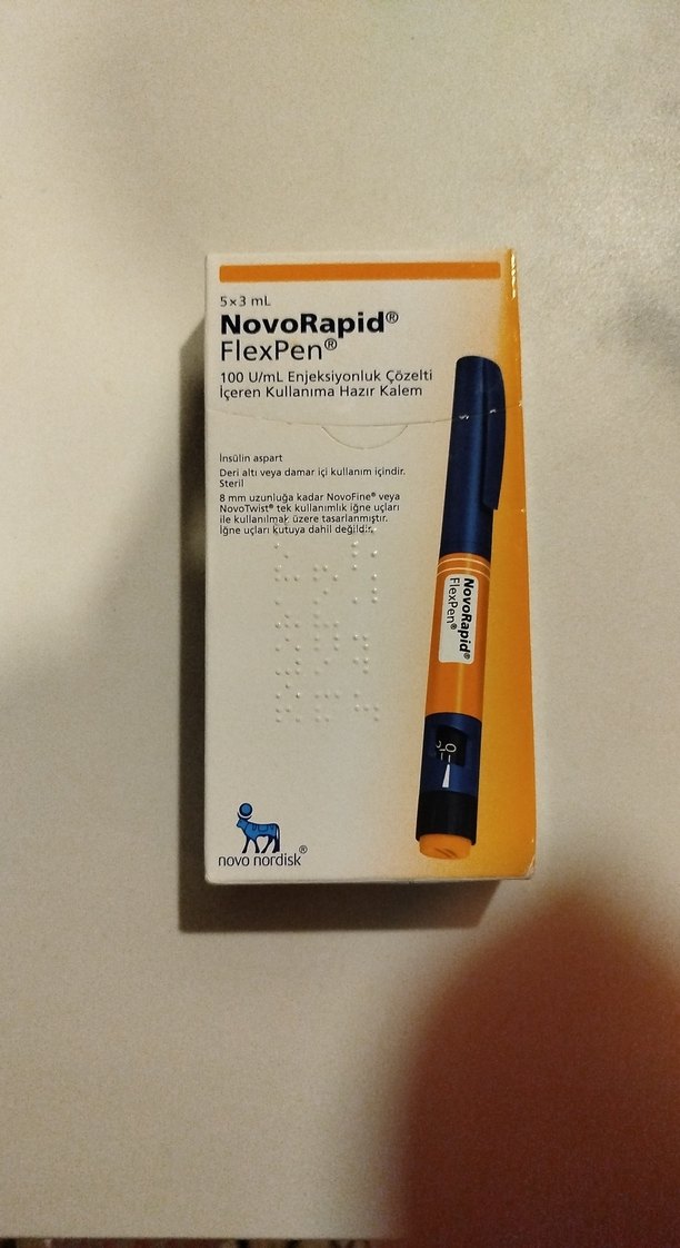 NovoRapid FlexPen, 100 U/mL enjeksiyon çözeltisi içeren kullanıma hazır kalemdir. Koyu turuncu renkte, 5 adet 3 mL kalem içerir. ️