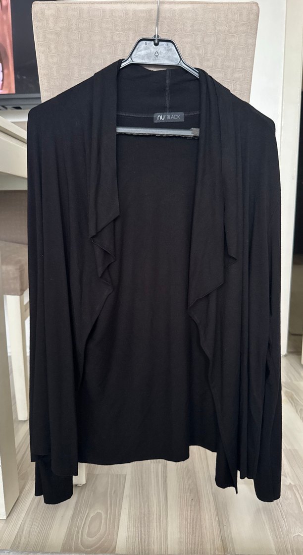 Orijinal NU marka çok temiz sorunu yok #nu #NU #nuhırka #nukadıngiyim #siyahhırka Kadın siyah midi hırka, uzun kollu ve drapeli yakaya sahip. Salaş kesimli ve keten kumaştan, ofis ve gündelik gotik tarz için uygun.