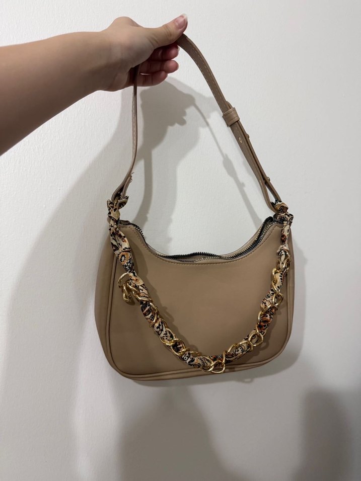 •Renk: Soft Bej / Nude (Çok açık kahve alt tonlu, nötr bir renktir.) • Model: Baget (Baguette) Omuz Çantası. Kol altında rahatça taşınabilir. • Kapanma: Üstten fermuarlı kapama. • Askı: Ayarlanabilir kısa omuz askısı. (Uzunluğu ayar tokalarıyla değiştirilebilir.) • Malzeme: Suni deri (yumuşak dokulu). •Durum: Birkaç kez kullanıldı (3 kere falan) •Genişlik: 25cm •Yükseklik: 15cm NOT: Dilerseniz çantadaki zincirli aksesuarı çıkartabilirsiniz.