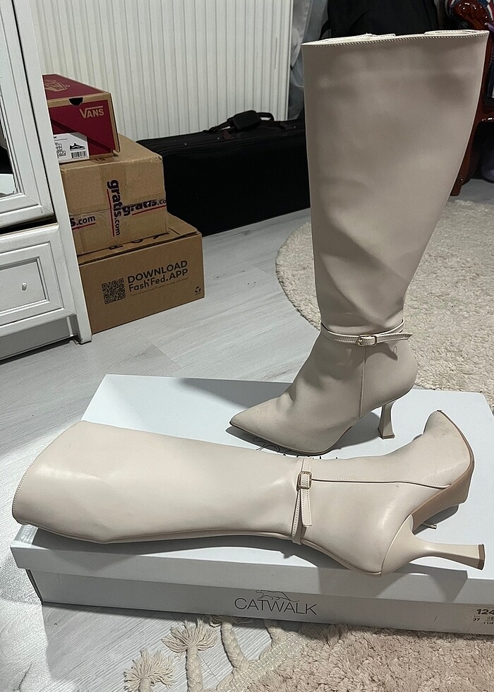 bej rengi çizme ürün yenidir yalnızca iki kez giyildi tam kalıptır ve yumuşak deridir çok kalın bilekliler için uygun değildir