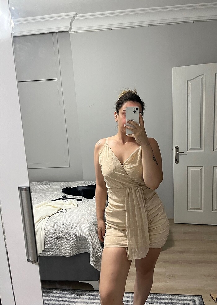 Elbise L beden. Temiz hiçbir lekesi yok. Bir kere giyinildi