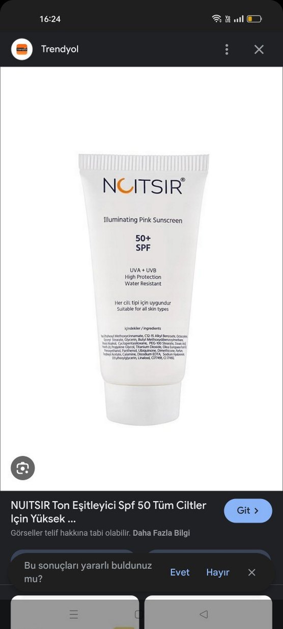 Nuitsir Ton Eşitleyici SPF 50+ pembe renkli, suya dayanıklı güneş kremi, tüm cilt tipleri için uygundur ve cilt tonunu eşitler. ☀️
