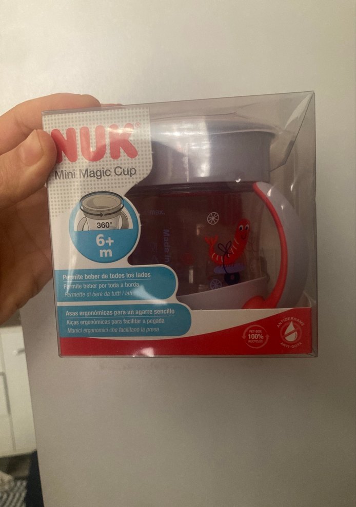 NUK Mini Magic Cup, 6 ay ve üzeri bebekler için, 360° içme kenarı ve kolay tutuş sağlayan ergonomik kulplara sahiptir. Tüm kenarlardan içilebilir ve biberondan bardağa geçişi kolaylaştırır.