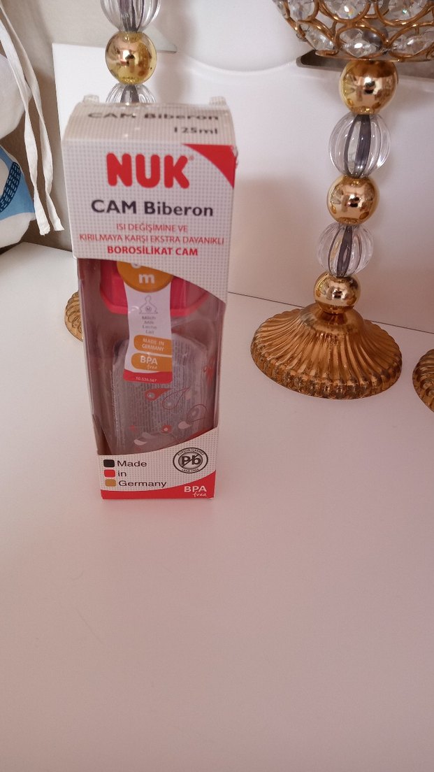Isıya ve kırılmaya dayanıklı borosilikat camdan yapılmış, BPA içermeyen 125 ml NUK bebek biberonu.Sifir ürün kullanılmadı.