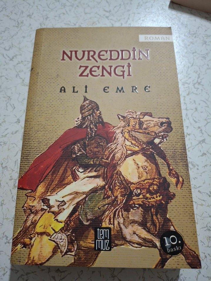 Ali Emre'nin Nureddin Zengi romanı, ortaçağ liderinin hayatını anlatır. Kapakta atlı Nureddin Zengi resmi bulunur.