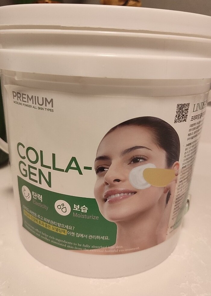 Büyük kova maske İki kaşık kolajen maskeye biraz su ekleyip karıştırıyoruz, yüze sürüyoruz Kalıplaşıyor. Cildi çok güzel soğutup, lifting etkisi sağlıyor.