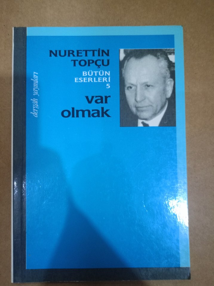 Nurettin Topçu'nun Bütün Eserleri serisinden 'Var Olmak' kitabı, mavi kapaklı ve yazar fotoğraflı, Dergah Yayınları'ndan.