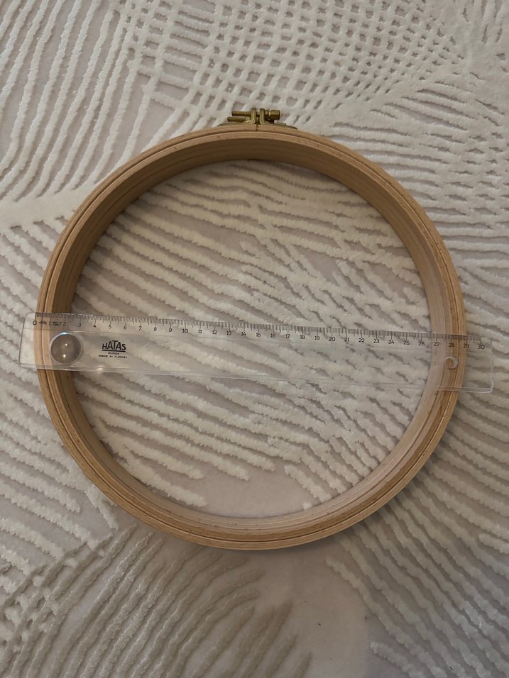 Nakış için kullanılan, ayarlanabilir metal tokalı, ahşap malzemeden yapılmış bej ve gri tonlarında nakış kasnağı. Sıfır ürün 4 adet nurge 7 numara