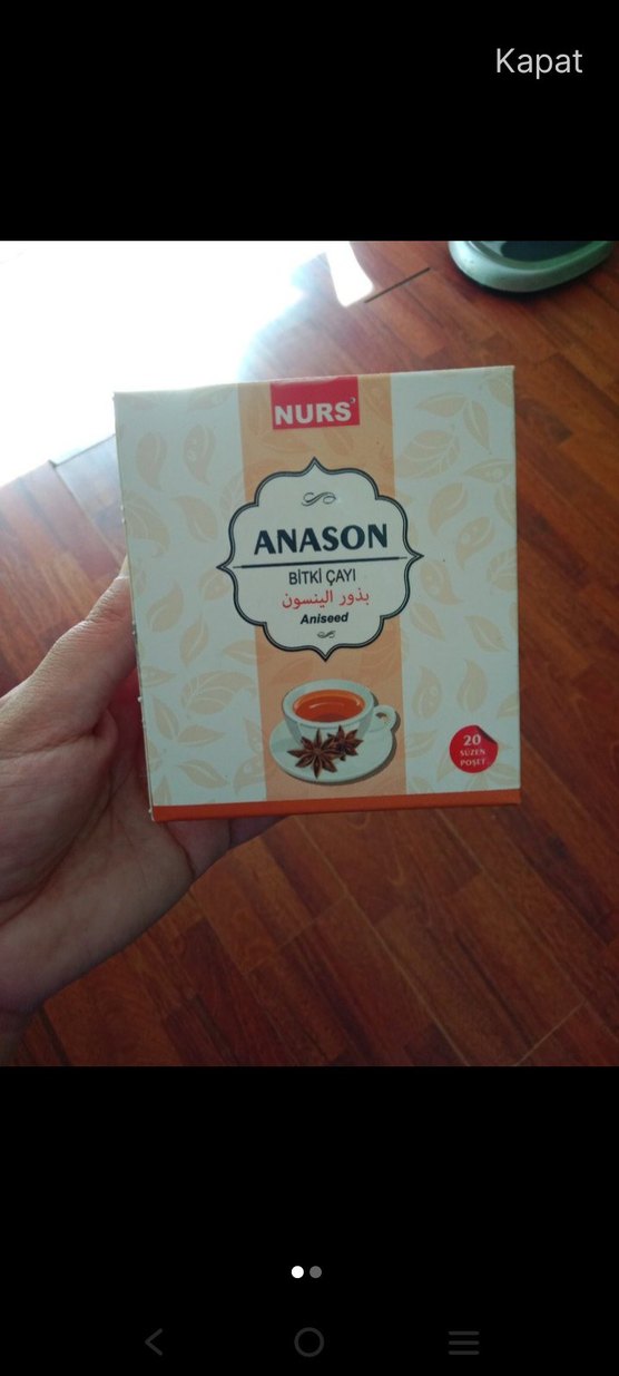 Nurs Anason bitki çayı, 20 süzen poşet içerir. Koyu kahverengi anason tohumu ile doğal bitki çayıdır.