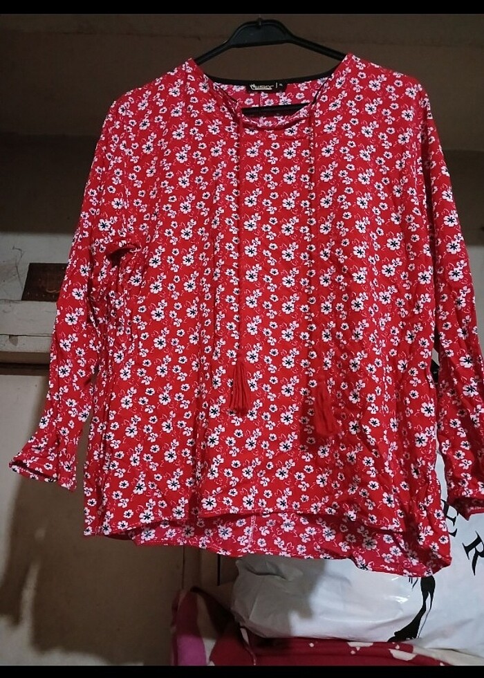 NURSEY WOMAN XL KIRMIZILI BAGLAMALI YAKA DESENLI BAYAN BLUZ ÜRÜN TEMIZ DURUMDA SAYILI KULLANILMIŞTIR 0 PAMUKTUR KALİTELİ ÜRÜN UYGUN FIYATTIR BOY.61 CM.KOLTUKALTI 53 CM.KOLUZUNLUGU 51 ÇMDIR.