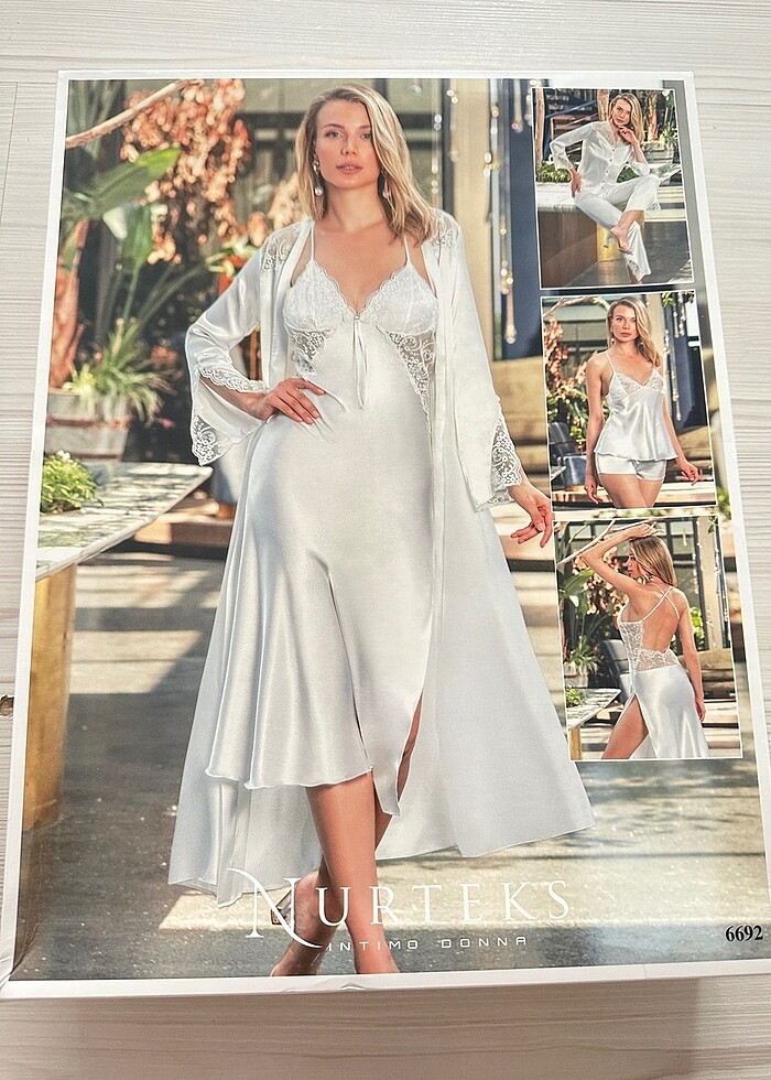 Saten altılı set gecelik,sabahlık,şortlu takım pijama takım sıfır etiketli orjinal kutuda