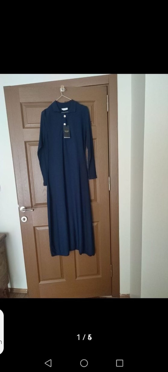 Nuss 1 beden, Düğmeli Lacivert Uzun Kadın Elbise