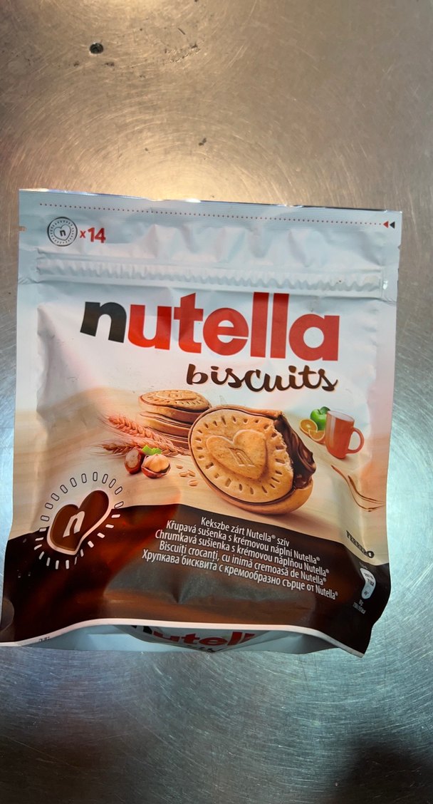 Nutella kremalı dolguya sahip 14 adet bisküvi içeren paket. Fındık kreması dolgusuyla tatlı bir atıştırmalık.