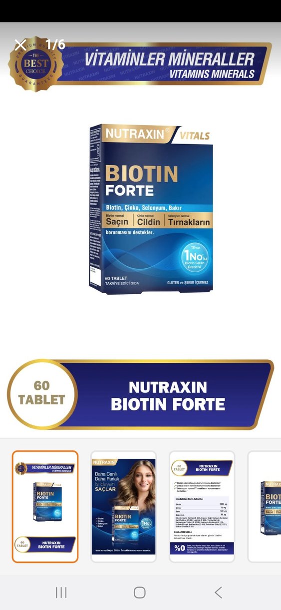 Nutraxin Biotin Forte, saç, cilt ve tırnakların sağlığını destekleyen biotin, çinko, selenyum ve bakır içerir. 60 tabletlik pakette, glütensiz ve şekersizdir.