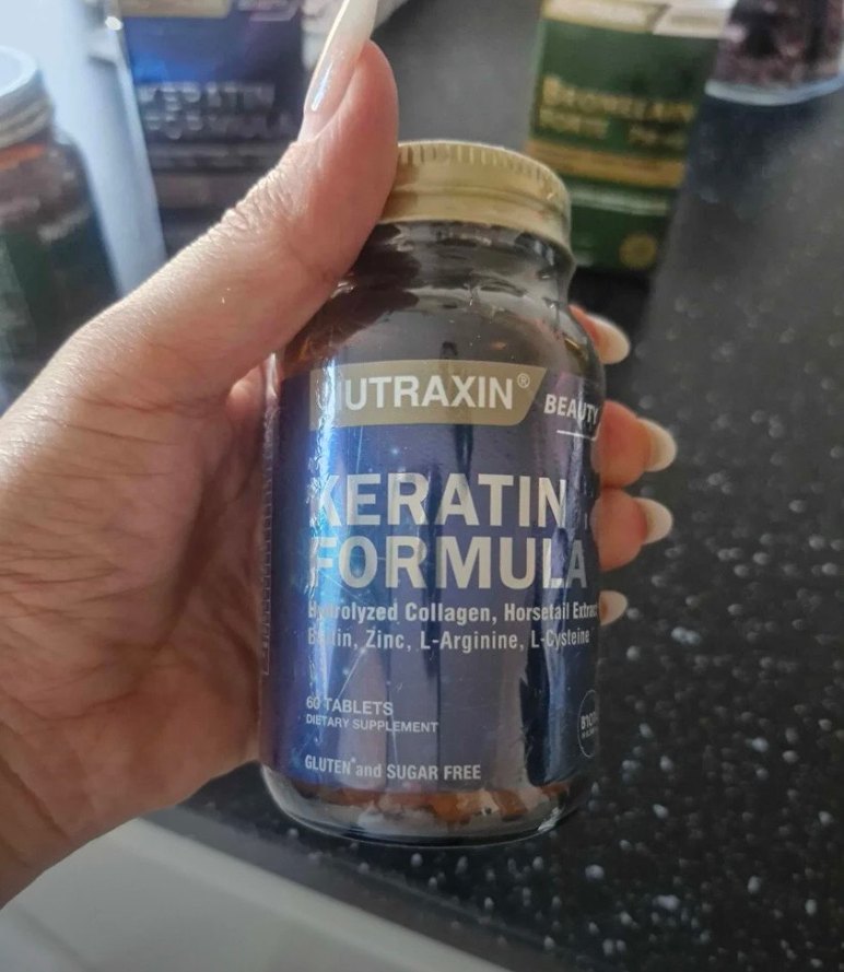 Nutraxin Keratin Formül, hidrolize kolajen, biotin, çinko, L-arginin ve L-sistein içerir. 60 tablet