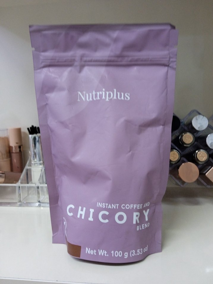 Nutriplus markasının anında kahve ve hindiba karışımı, 100 gramlık pastel mor ambalajda sunulmaktadır. ☕