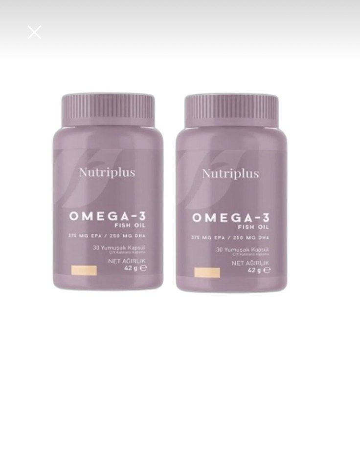 Nutriplus Omega-3 balık yağı, 375 mg EPA ve 250 mg DHA içerir. 42g ağırlığında, 30 yumuşak kapsül içerir. 2 adet