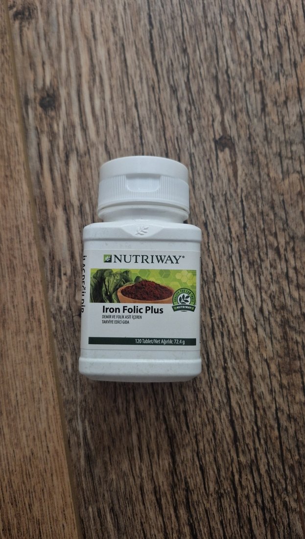 Nutriway Iron Folic Plus, saç ve vücut sağlığını destekleyen demir ve folik asit içerir. 120 tabletlik şişede günlük kullanım için uygundur. amway