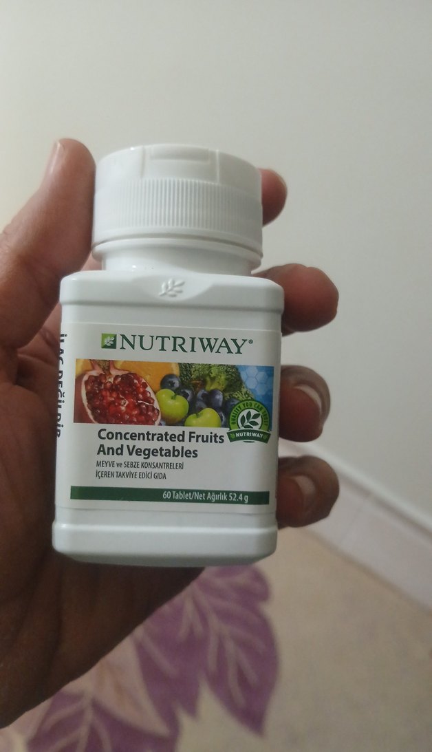 Nutriway markalı 60 tabletlik, 52.4g ağırlığında konsantre meyve ve sebze takviyesidir. Günlük besin desteği sağlar.