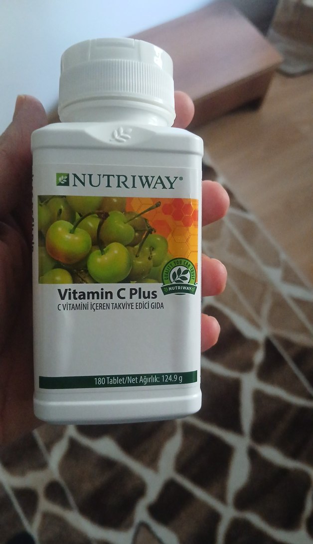 Nutriway Vitamin C Plus, C vitamini içeren 180 tabletlik takviye edici gıda, 124.9 g ağırlığında.