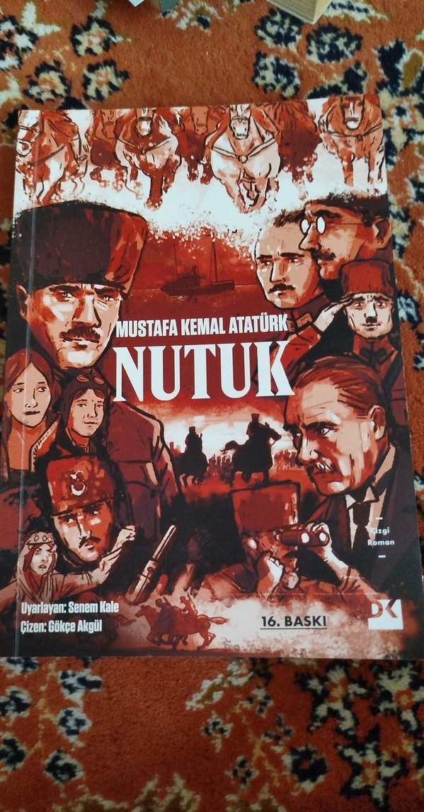 Mustafa Kemal Atatürk'ün Nutuk adlı tarihi kitabı, Senem Kale tarafından uyarlanmış ve Gökçe Akgül'ün çizimleriyle 16. baskıdır.