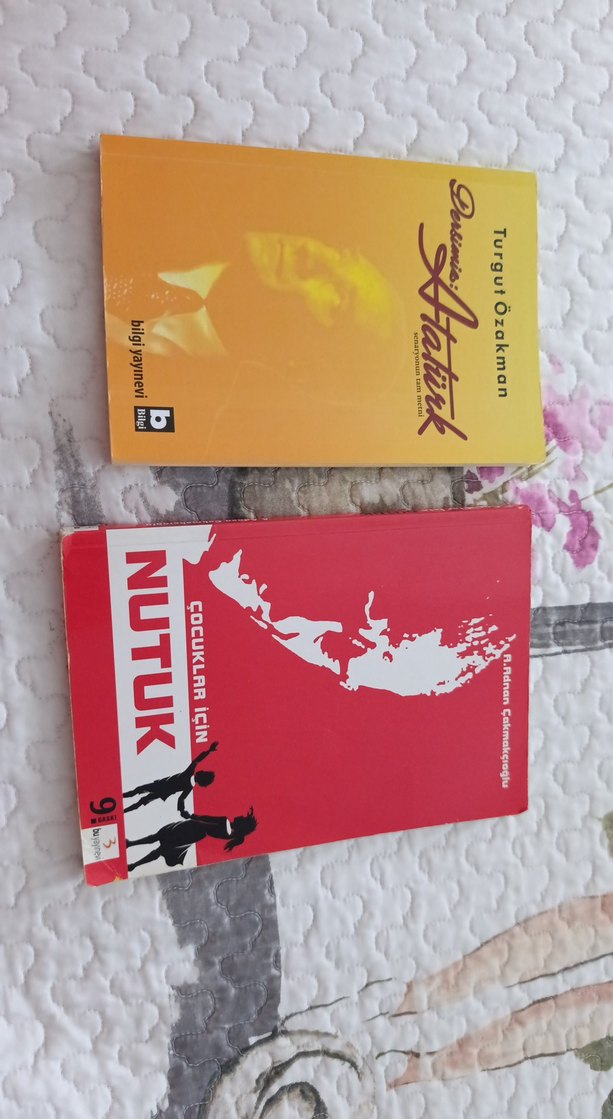 Turgut Özakman'ın "Çocuklar için Nutuk" ve "Dersimiz Atatürk" kitaplarından oluşan çocuklar için tarih seti. "Çocuklar için Nutuk" kitabı biraz kırışmıştır.